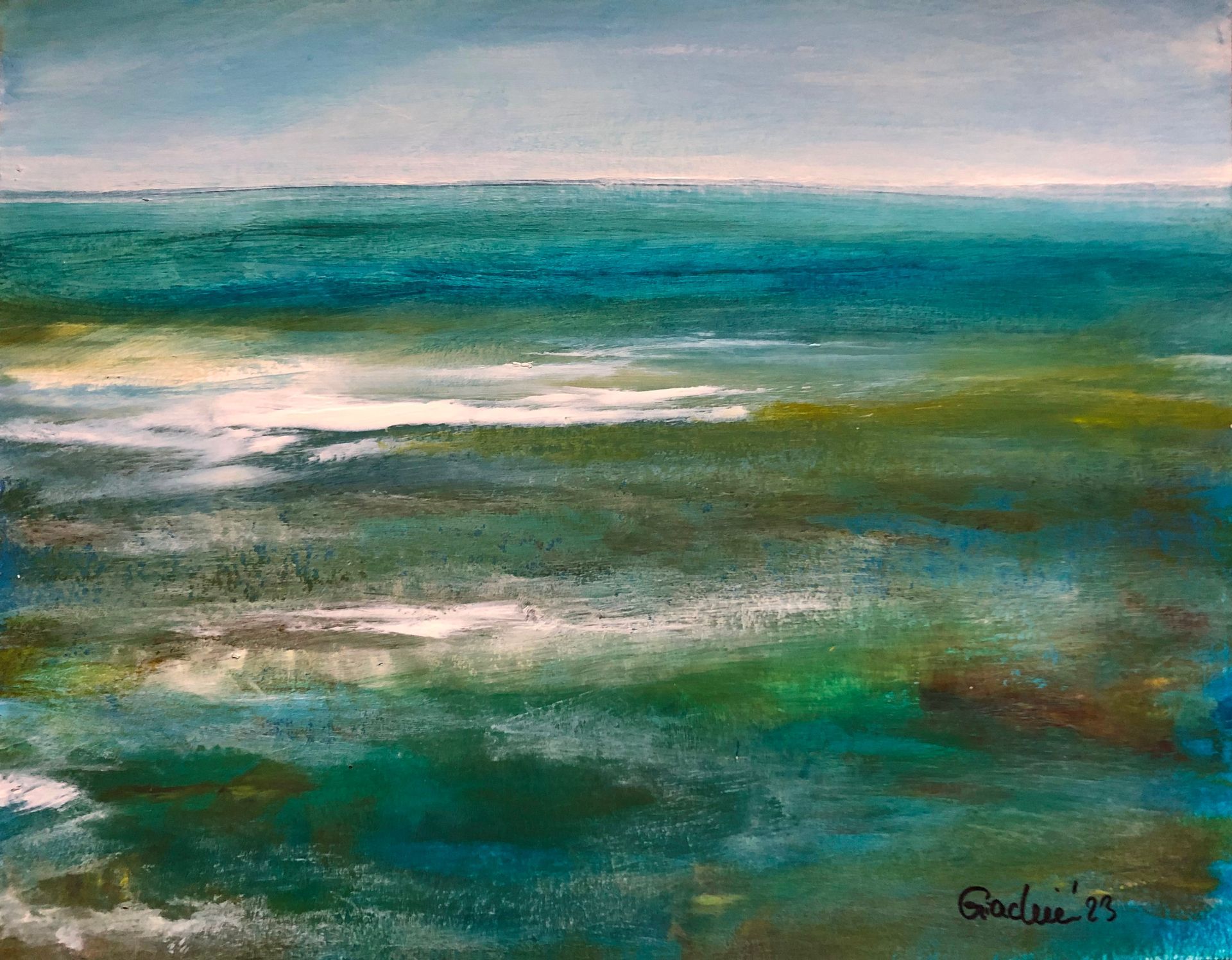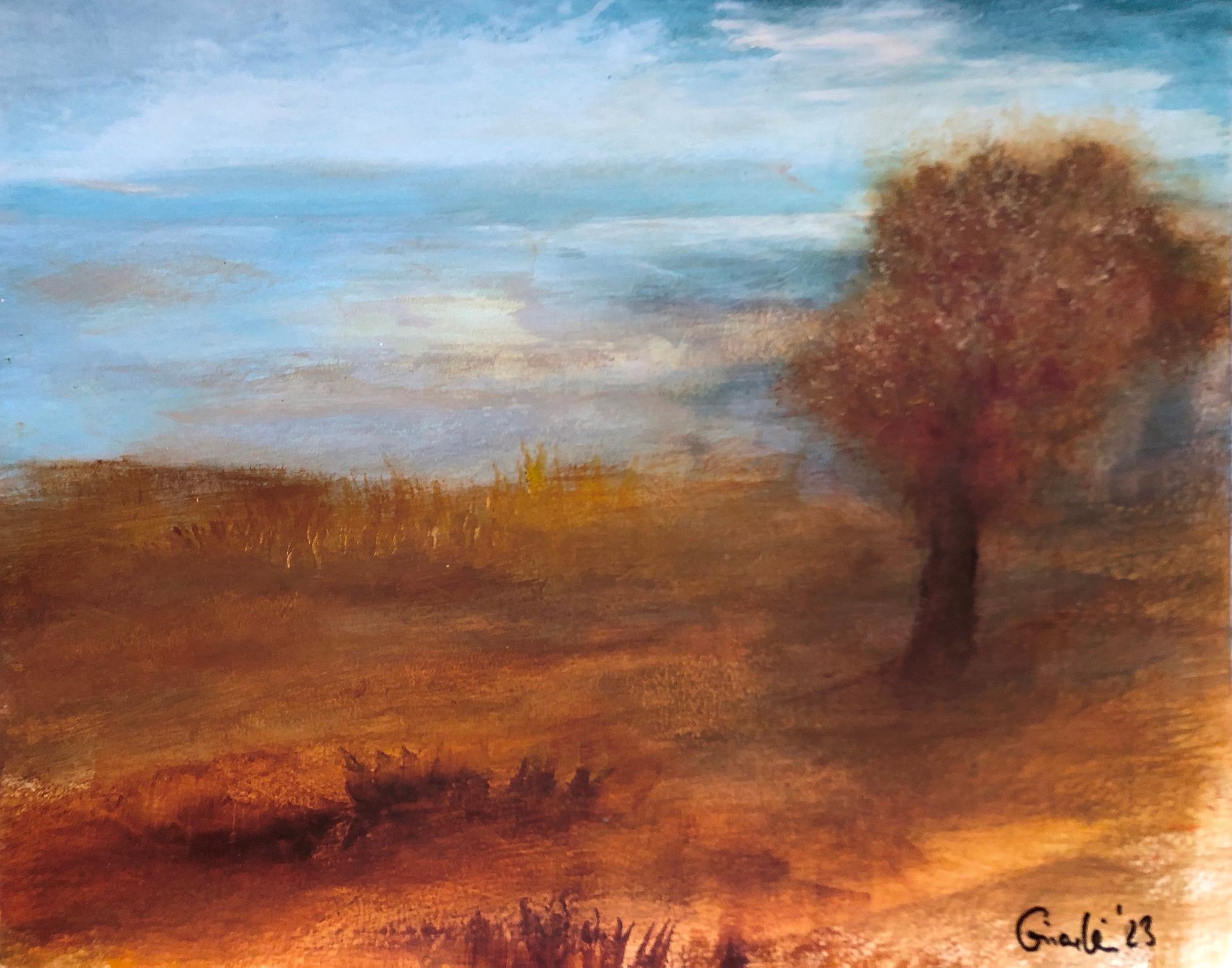 2023 fängt so an, wie ich es mir lange gewünscht habe....malen, malen, malen! Das Weltgeschehen hält uns alle in Atem und immer wieder tauche ich lieber in Landschaften ab, die ich so oft in meinem Leben gesehen habe. Sie verschaffen mir Momente der Harmonie und des tiefen Gefühls für die Schönheit unserer Erde. Immer öfter leiste ich mir, die Bilder meiner Empfindung dahin zu malen, schnell, ganz schnell...als würden sie mir sonst entschwinden, bringe ich sie auf die Leinwand ohne dabei irgend eine Regel zu beachten. Ich male für mich, weil ich diesen Augenblick des inneren Betrachtens festhalten möchte, nur deswegen. Es ist für mich die befriedigendste Art der Malerei und verschafft mir meine ehrlichsten Arbeiten.